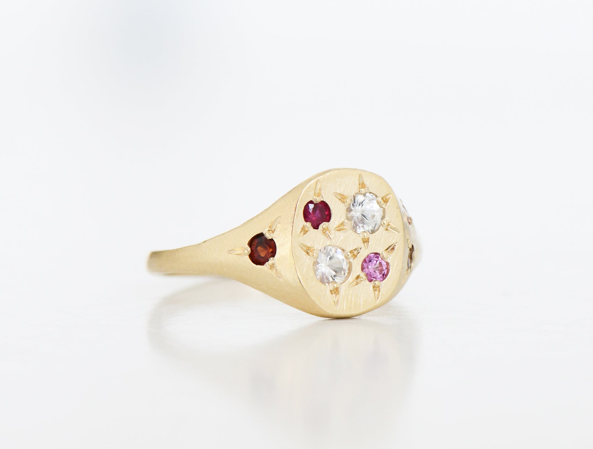 The first Neapolitan ring. Pink and white sapphires with rubies.